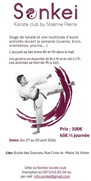 Quoi? Stage de karaté du 27 au 30 Avril 2026